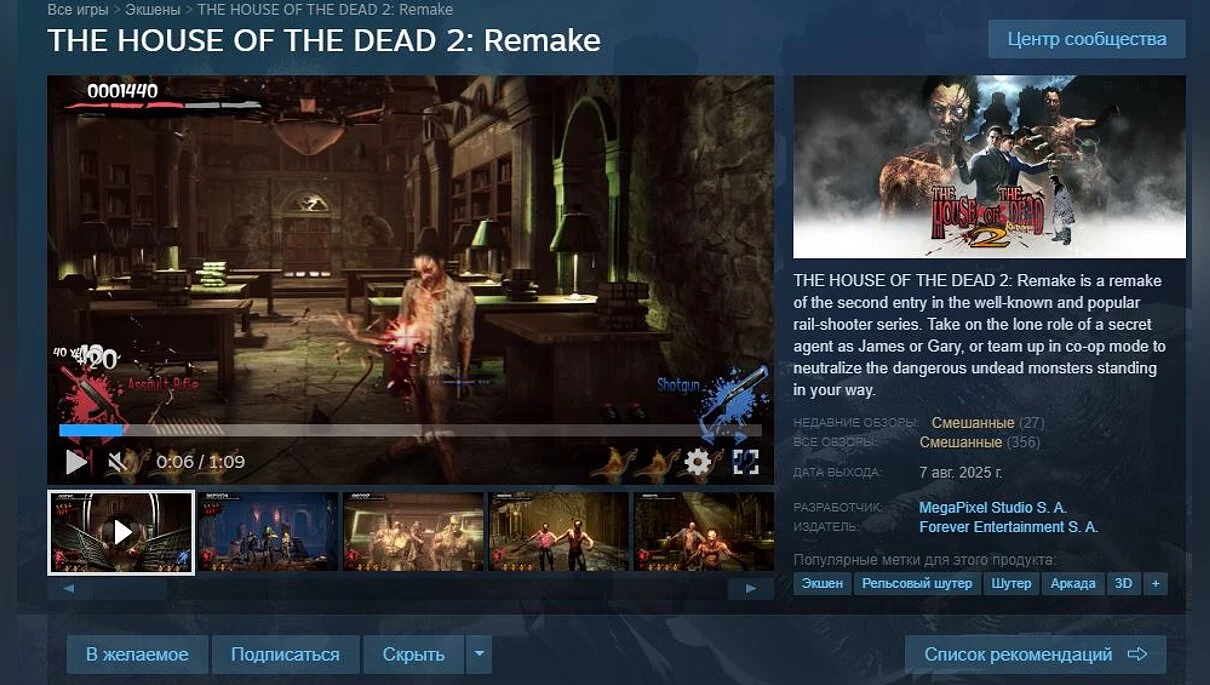 Всем привет, сейчас расскажу про House Of The Dead 2: Remake, игра вышла тихонько, чтобы никто не увидел, у игры не было никакой рекламы, и даже я, ждавший игру, не заметил ее выхода, хоть бы при заходе в Steam какую рекламу сделали бы, о выходе игры узнал случайно из коммента на обзор под первой частью, судя по всему, я такой не один, оценок у игры мало, всего 356, оценки смешанные, и хотя в обзорах все вспоминают свое детство и игровые автоматы, обзорщики разделились на два лагеря, первые говорят спасибо за детство и хорошо отзываются об игре, а вторые говорят, что это надругательство над детством, и ставят игре плохие оценки, в чем же дело, давайте разбираться.