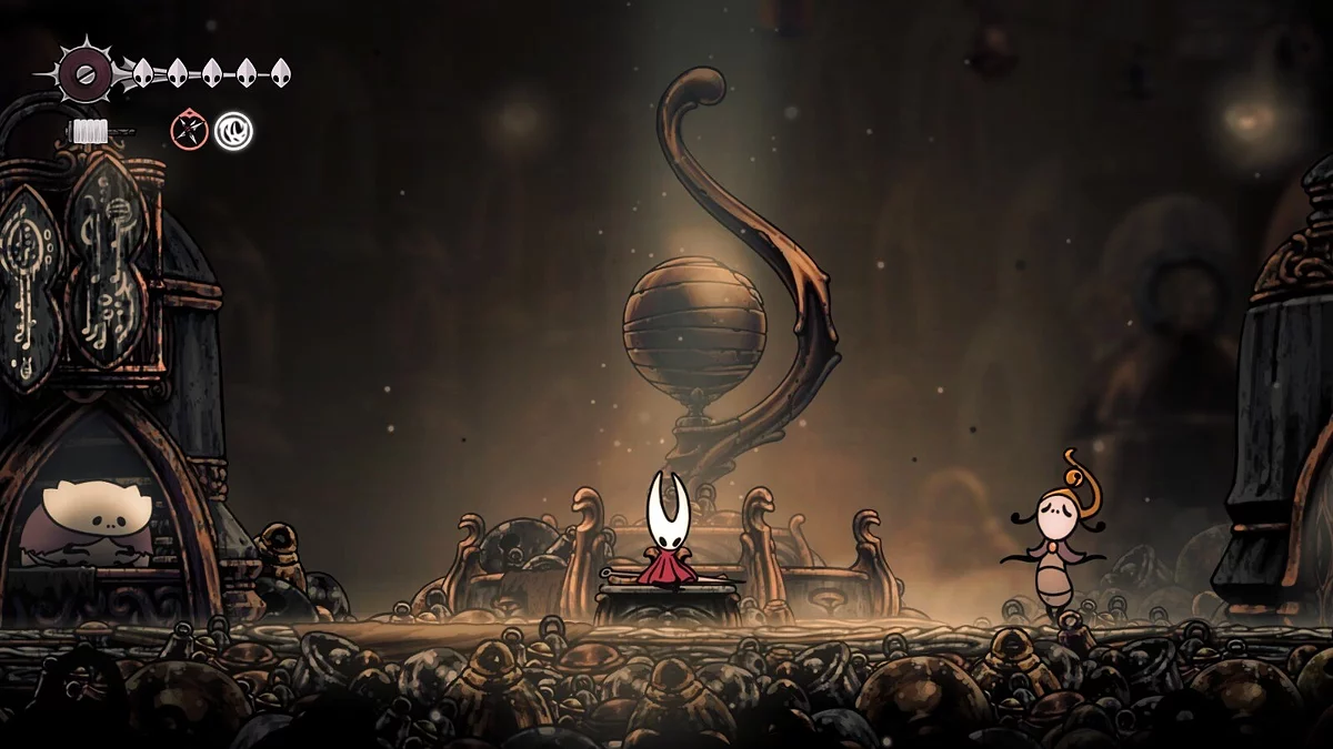 «Катсцены» — пожалуй, именно их мне не хватало в оригинальном Hollow Knight, где их было очень мало — только в начале и в конце игры. В Silksong ситуация немного иная. Во-первых, теперь игра разбита на акты (всего три), и перед началом каждого акта или важного события может появиться кат-сцена. Я очень люблю анимацию, и кроме того, что катсцен стало больше, они ещё и красивее, приятно смотреть. Особенно мне нравится анимация перед второй встречей с Лейс.