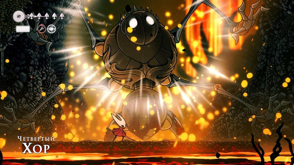 В отличие от HK, где лишь некоторые боссы наносили по 2 маски урона, в Silksong почти все боссы сносят по две маски, а у некоторых есть атаки, которые наносят даже 3 маски! Я не против таких изменений, но когда какая-то зверюга наносит две маски одним касанием и при этом призывает двух миньонов, которые тоже наносят по две маски, это иногда раздражает. Особенно с учётом того, что в Silksong новые маски собираются гораздо медленнее — осколки масок будто бы пожалели. Мои любимые боссы — Последний судья, Лейс, Фантом, Четвёртый хор, Заводные танцоры и Матерь шёлка.