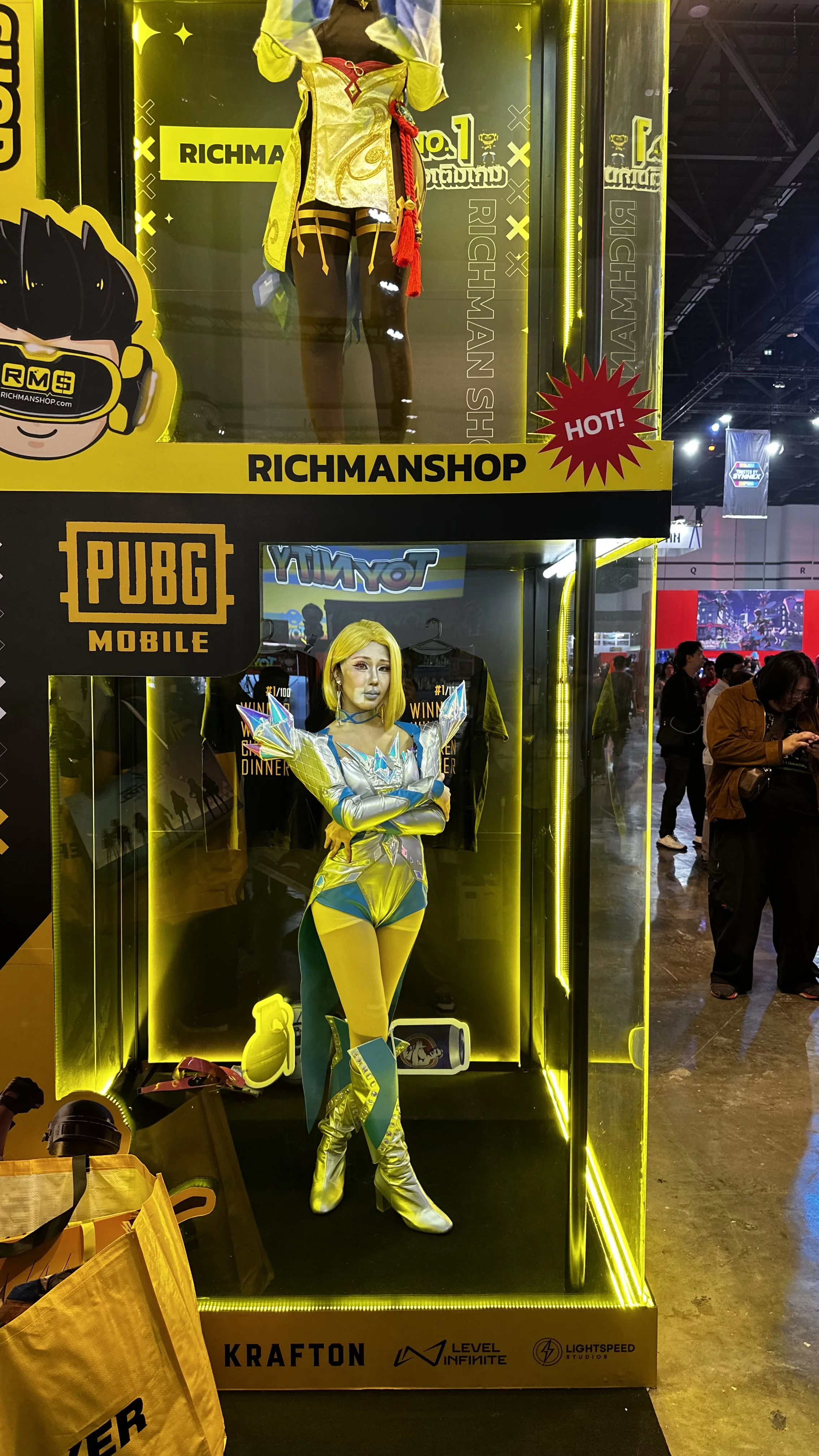 Косплея еще совсем нет, ряженые появятся в холлах выставочного центра завтра. Пока заприметили всего один эффектный образ.