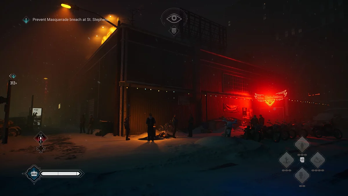 Ощущение, что где-то что-то авторы не довели до ума, в Bloodlines 2 нахлынывает чаще, чем хотелось бы. Уровень качества непостоянен: например, основные персонажи выглядят отлично с точки зрения графики, а второстепенные — откровенно плохо. В игре много мелких багов, производительность на PS5 оставляет желать лучшего, а отдельные механики и концепции не продуманы в полной мере. Шкала нарушения Маскарада, при полном заполнении которой герой автоматически умирает, словно добавлена чисто для галочки. Тут сразу стоит отметить, что катастрофических проблем у Bloodlines 2 нет — это, к счастью, не первая часть на релизе. Но всё же мелкие раздражители накапливаются и дают о себе знать.