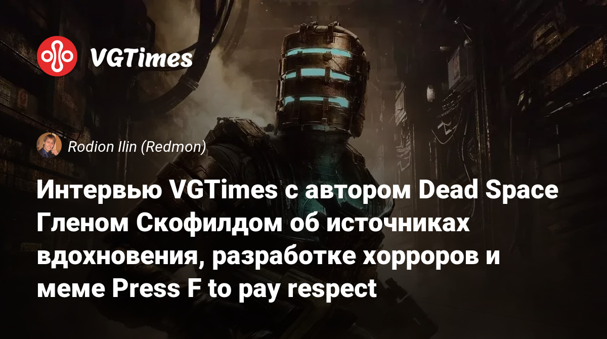 Интервью VGTimes с автором Dead Space Гленом Скофилдом об источниках вдохновения, разработке хорроров и меме Press F to pay respect