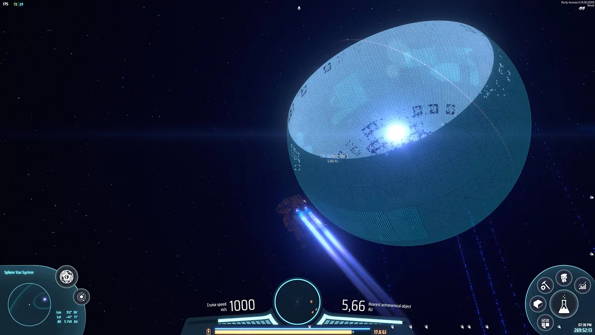 В раннем доступе DSP встречала без фанфар: меню — спартанская заготовка, сухие строки интерфейса с плохим шрифтом, и огромная сфера на фоне. «Ещё одна инди-демка», — подумалось мне. Тогда я не знал, сколько сил и времени уйдёт на то, чтобы пройти игру.