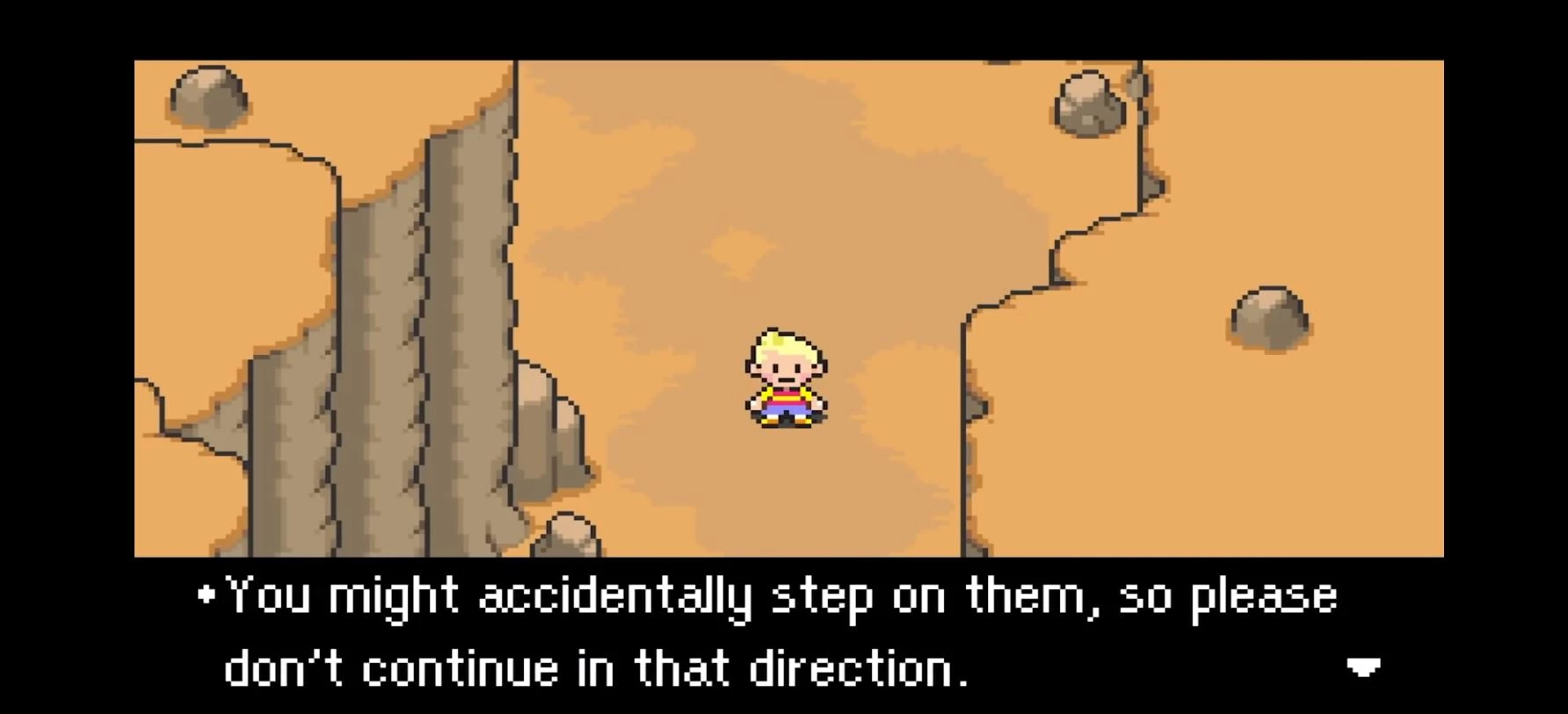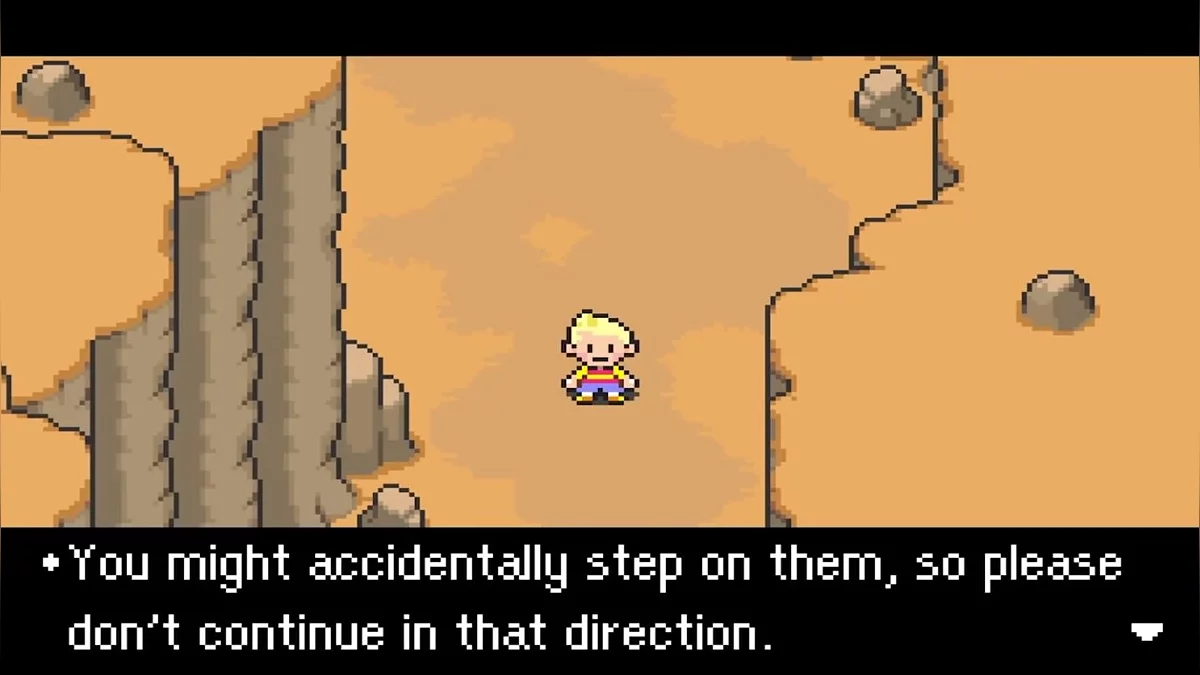 Ещё одним классическим JRPG‑проектом стал своеобразный релиз 2006 года от студий Brownie Brown и HAL Laboratory — тоже для GBA. Своеобразность серии придаёт юмор, поэтому совсем не удивительно, что игровую зону здесь ограничили муравьями. Вы спросите: «Что? Кем?» — а я отвечу: вам не показалось. Разработчики действительно оградили доступ к одной из локаций муравьями. Подходя к пути, на который вам ещё рано вступать, игра выводит следующее сообщение: «У вас под ногами муравьи. Вы можете случайно наступить на них, поэтому, пожалуйста, не продолжайте движение в этом направлении».