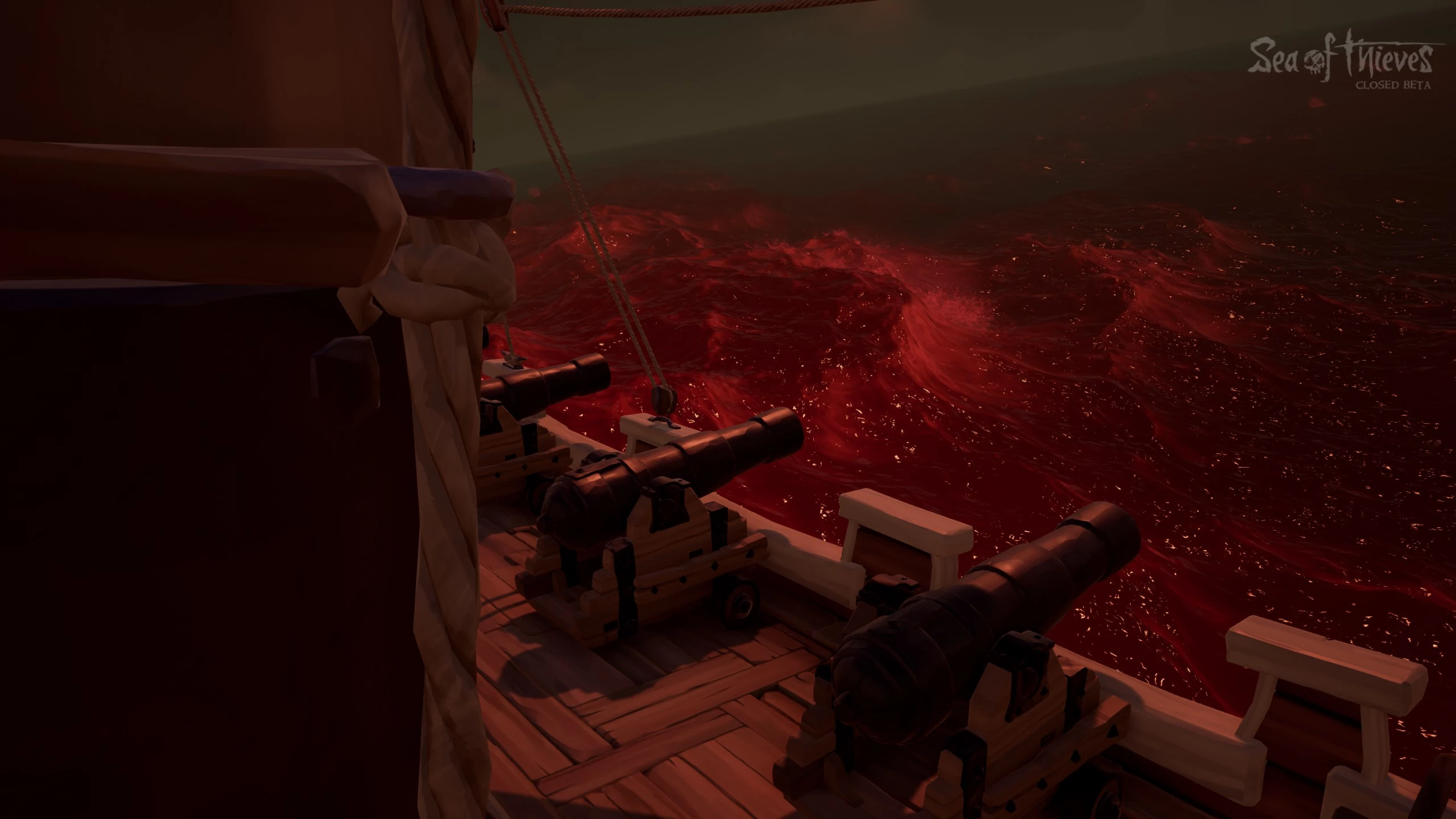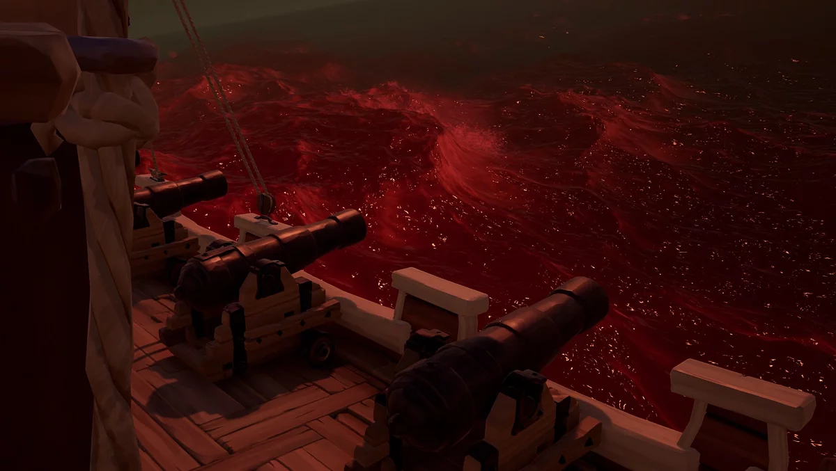 Продолжаем морскую тематику с многопользовательским ролевым экшеном про пиратов, выпущенным в 2018 году компанией Rare Ltd. Хоть игрокам и предстоит столкнуться с легендарными морскими чудовищами: Кракеном и Мегалодоном. Но даже этих титанов можно победить! Однако Красное море, известное как Пелена дьявола, победить не удастся — оно служит границей игрового мира. Как только вода вокруг станет красной, судно начнёт постоянно получать урон, и на нём будут образовываться пробоины, что неизбежно приведёт к затоплению. Впрочем, через Пелену можно пройти — для этого потребуется квестовый предмет, а целью путешествия станут Золотые берега.