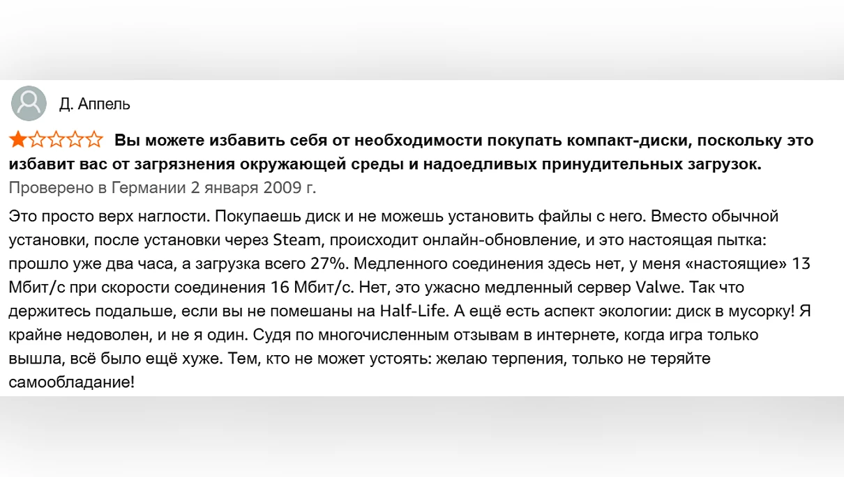 Каноничным же ивентом стала осень 2004 года. Valve принудила всех покупателей Half-Life 2 активировать игру через Steam — и это фактически обеспечило сервису взрывной рост аудитории. Такое решение было крайне спорным: многие игроки жаловались на необходимость постоянного подключения и сырость клиента. Но стратегически это стало поворотным шагом.