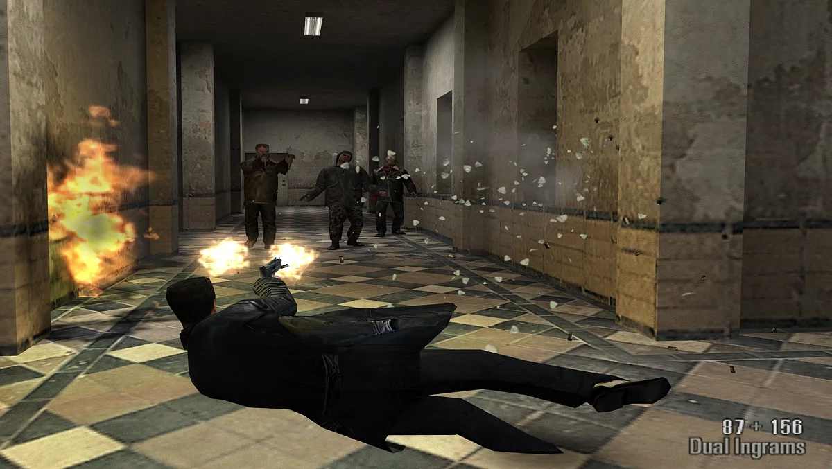 Говоря о Max Payne, никак нельзя не упомянуть и эффект bullet time. Если говорить вкратце, то это замедление времени во время перестрелок. Оно не только добавило проекту кинематографичности, но и разнообразило геймплей, позволяя избегать попадания пуль. Max Payne стала первой игрой, в которой разработчики решились на использование такой механики в геймдеве.