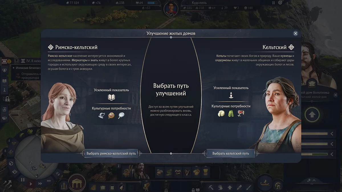 - Римский путь: Превращаем местных в «Меркаторов». Красные черепичные крыши, потребность в тогах и импортном пурпуре. Это путь престижа и тесных связей с Империей.