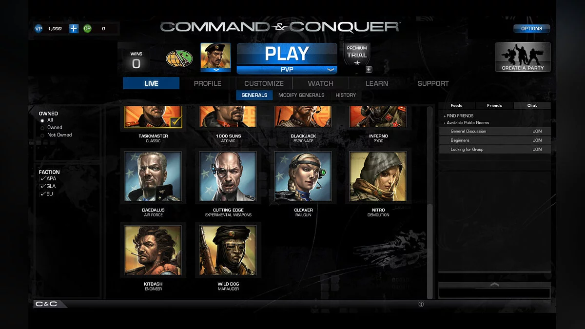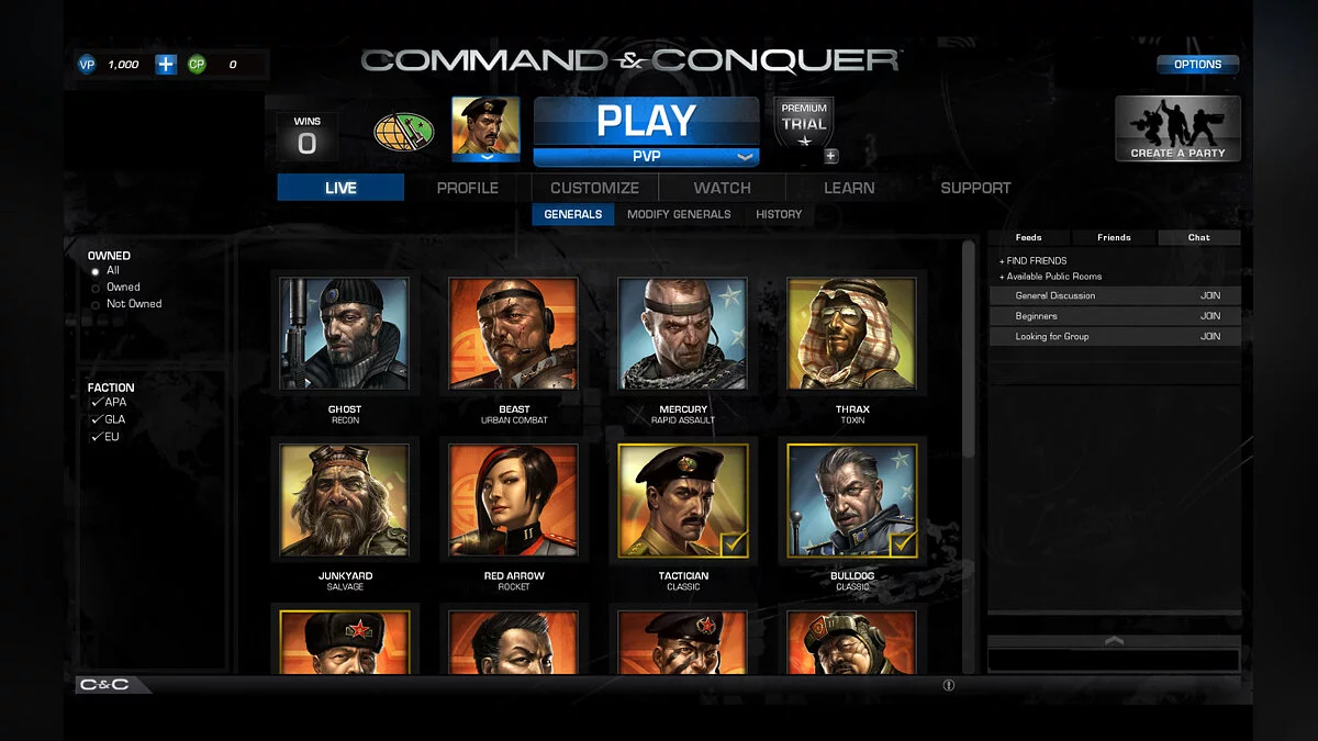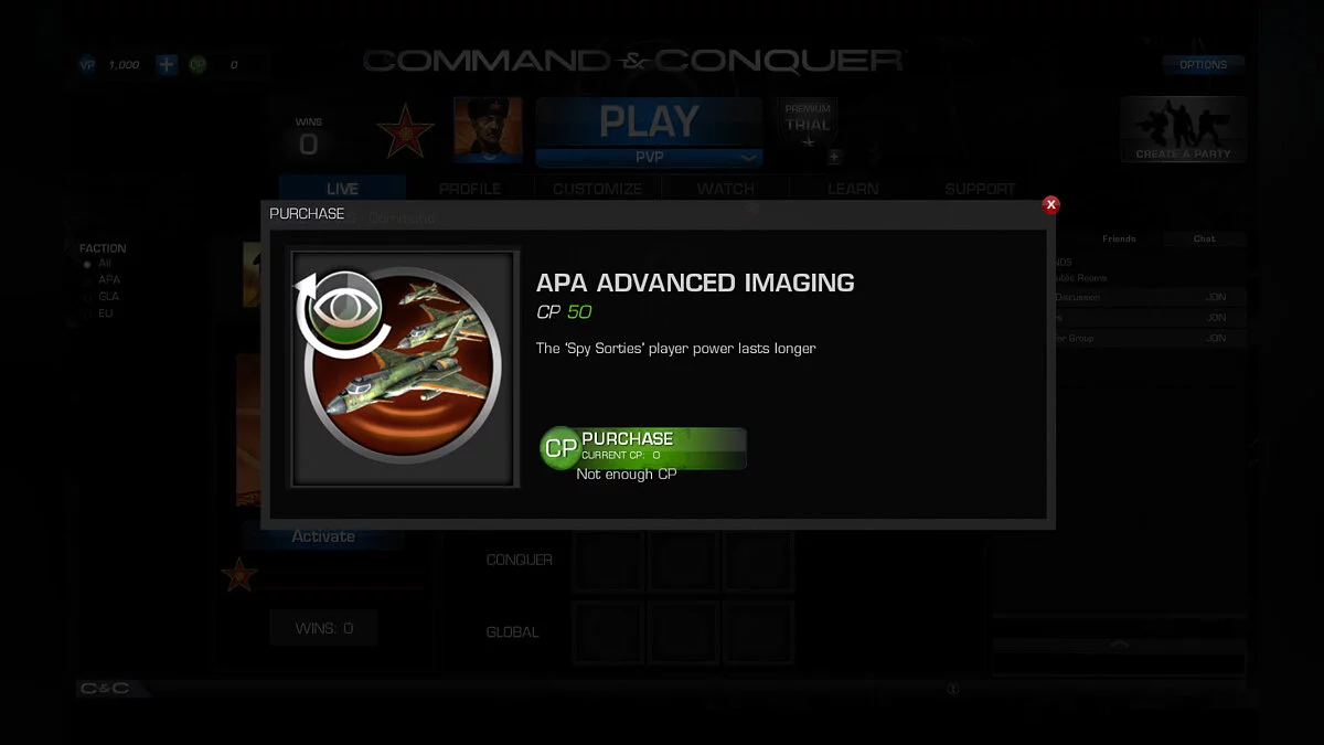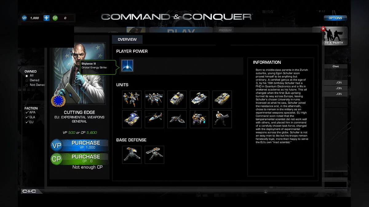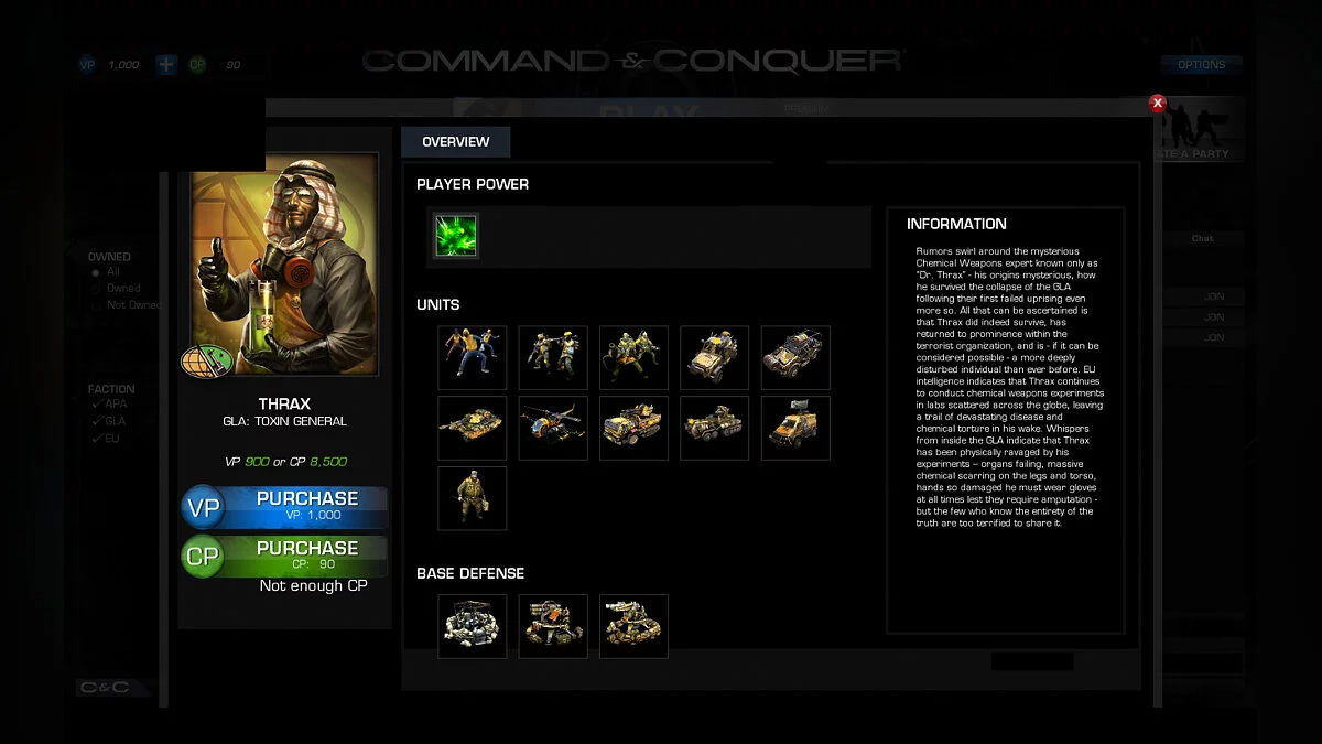 Как и следовало ожидать, новых генералов можно было купить как за деньги, так и за игровую валюту. Честно говоря, начинающий игрок, сыгравший два-три матча против ИИ, смог бы получить около 500 внутриигровых кредитов. Однако чтобы купить генерала потребовалось бы 7 000 — 8 000. За победы в играх против человека давали куда больше кредитов, но ведь надо было сначала победить.