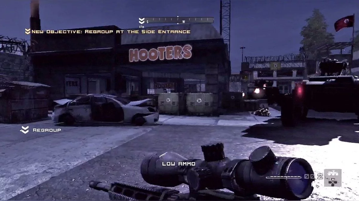 THQ покончила со своей долгосрочной издательской перспективой относительно недавно, и последней игрой, которую они издавали, была Homefront, которая помогла компании покинуть этот мир с пустым банковским счетом. Не удивительно, что THQ попыталась засунуть в игру как можно больше рекламы, чтобы хоть как то поднять статус своей казны, и может быть она им помогла: никто не знает. Рестораны Hoosters закончили свою карьеру так же печально, как и компания издателей. Проклятие или совпадение? Кто знает.