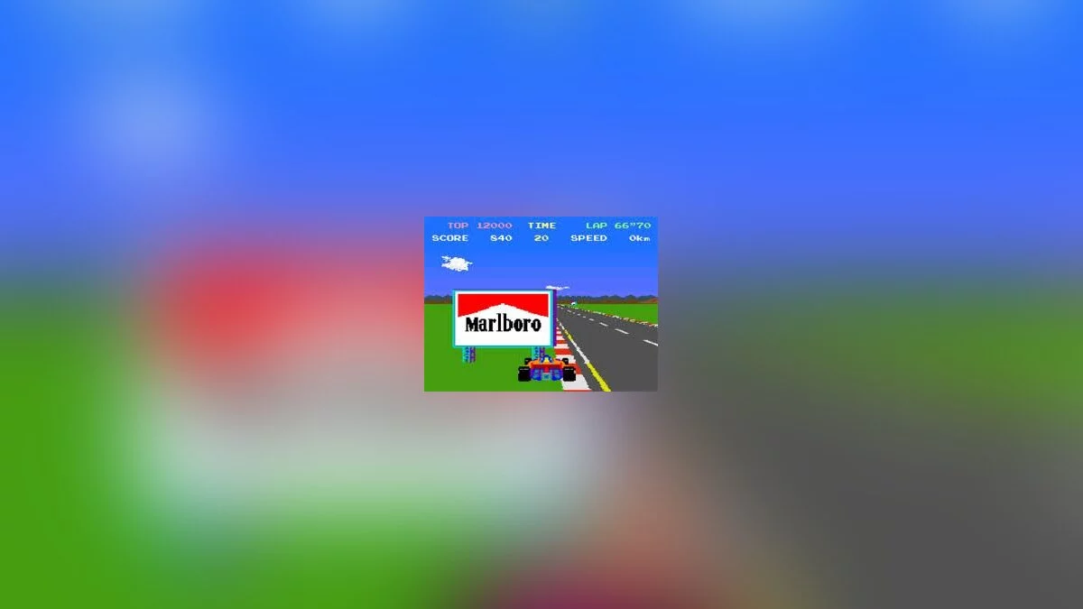 Эта реклама является одним из самых ранних примеров продакт плейсмента в истории игр, и сейчас она кажется уже устаревшей. Игра Pole Position была одним из первых гоночным хитом. Я уверен, что Namco получали хорошие деньги и за такие билборды как Pepsi и Canon, но самая странная реклама была, конечно, о сигаретах Marlboro. Соль в том, что в US, к примеру, нельзя было рекламировать сигареты на телевидении, и поэтому компания Marlboro решила схитрить. Увы, долго это не продлилось, и в более поздних версиях игры реклама сигарет исчезла с билбордов.