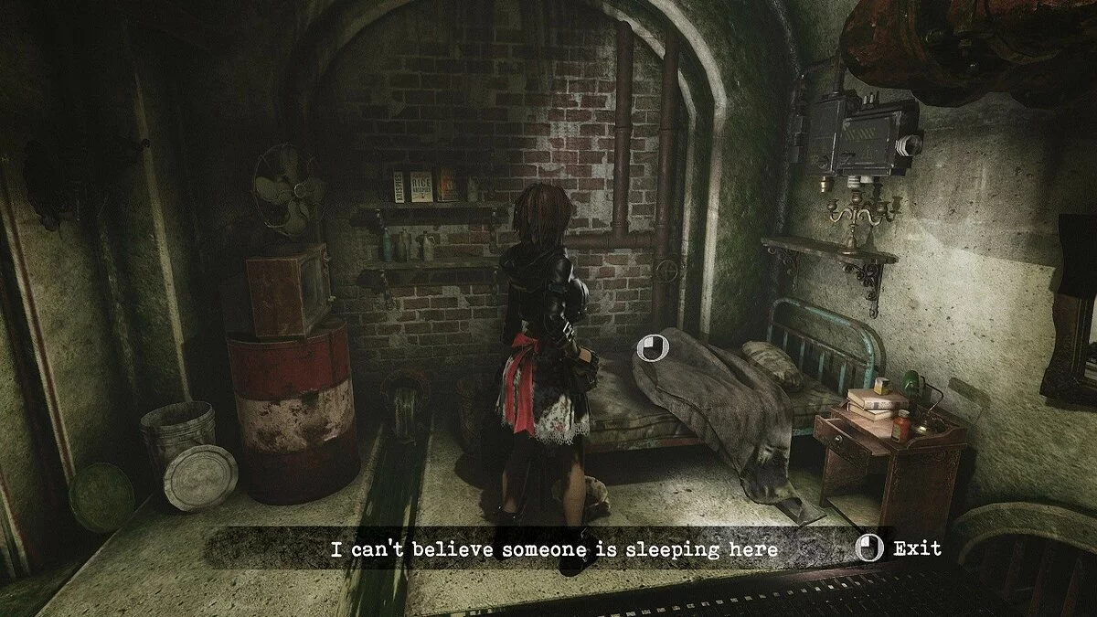 В самом начале героиня отключается, после чего просыпается полностью голой в ванне. При этом кто-то вырезал ей глаз и подключил к странным медицинским приборам. Придя в себя, девушка начинает исследовать больницу, чтобы узнать, что с ней произошло.