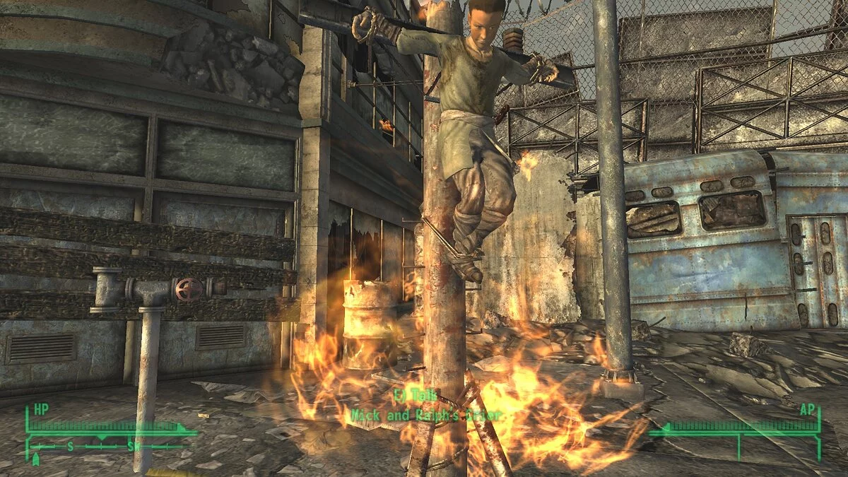 Возьмем одного ребенка, один угол Нового Вегаса, поставим ребенка в этом углу и заставим его постоянно кричать «Если то, что вы ищете, можно купить, то только у Мика и Ральфа!». Постоянно. Именно такой формулой пользовались разработчики. Ох, сколько же раз умерли несчастные дети...