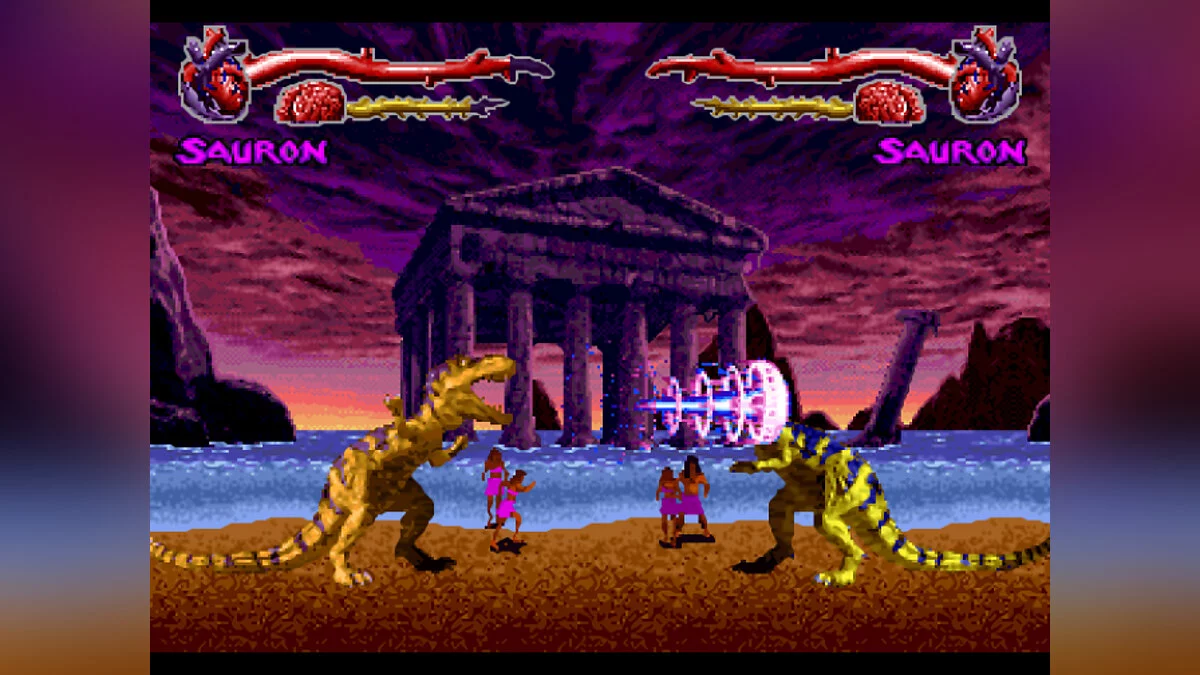 Одна из очень старых игр про борцовскую жизнь динозавров и других доисторических животных тоже заслужила место в этом списке. Особенность полосок жизней здесь в том, что к ним подошли с большой креативностью (а ведь сейчас креативность на последнем месте, в моде минимализм). Полоска — это как бы артерия сражающегося динозаврика, и кровь из нее потихоньку приближается к сердцу. В последний момент орган «разрывается» и «боец» умирает, а у играющих в этот файтинг появляется ужасное желание попробовать еще раз. Креативность, да-да.