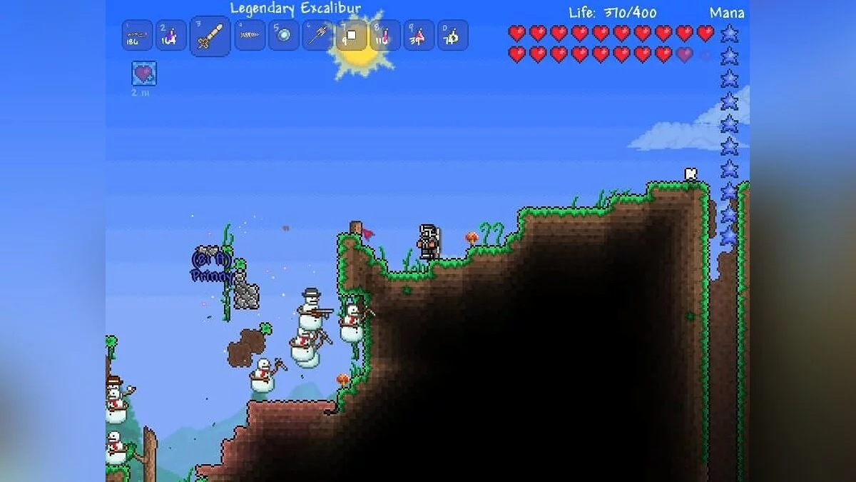 После пресловутого «Майнкрафта» песочница «Террария» оказалась очень неожиданным хитом на рынке. Кстати говоря, совсем-совсем недавно в ней появились Steam-достижения, чуть меньше сотни. А это круто. В этой игре есть такой... Морозный Легион. Он состоит только из снеговиков. Вы видите?.. У них ножи в руках. НОЖИ! Не мечи и не молоты. ЭТО НОЖИ. Мне немного не по себе каждый раз, когда я смотрю на этих существ. Мне страшно!