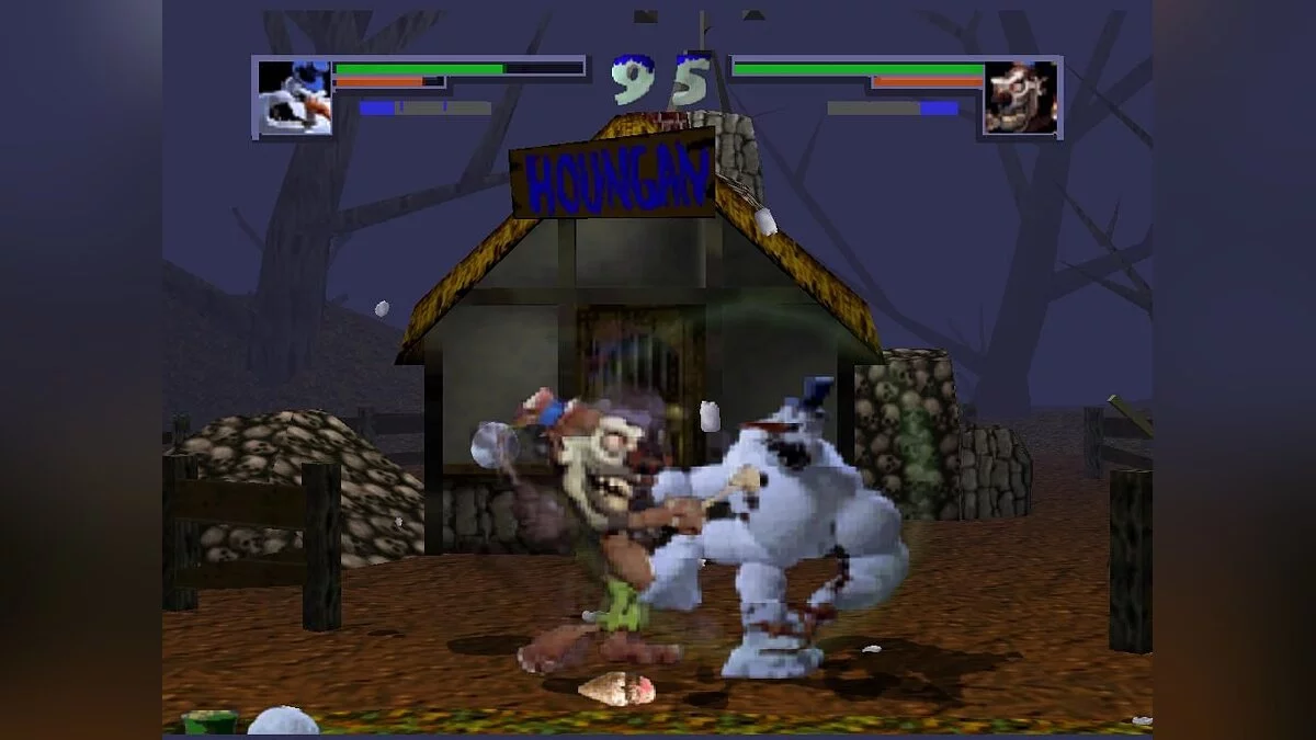Эта игра является очень вялым и не самым популярным файтингом тех лет. Да и был он комедийным, к нему серьезно не относились. Там были очень странные бойцы, а один из них был Bad Mr. Frosty. И он, кстати говоря, какое-то время получил звание маскота этой игры. Он был озвучен талантливым актером Джимом Каммингсом, и он был самым плохим персонажем какое-то время. Хорошие манеры? О нет. Мистер Фрости не такой. Он начистит вам морду при любой возможности.