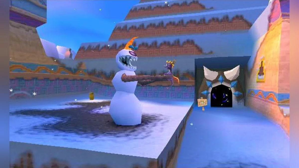 Огнедышащие драконы опасны для любого существа, не важно из чего оно сделано (Только если вы не Хоббит). Но снеговики, как я понимаю, являются мистическими существами и к обычному огню не восприимчивы. Именно поэтому в Spyro они слишком агрессивные. Пока вы не найдете лазер, чтобы сжечь снеговиков на своем пути, любая попытка подойти к ним будет кончаться тем, что снеговик будет душить дракончика и выкидывать его ко всем чертям! А посмотрите на его лицо? Господи, ну и зараза.