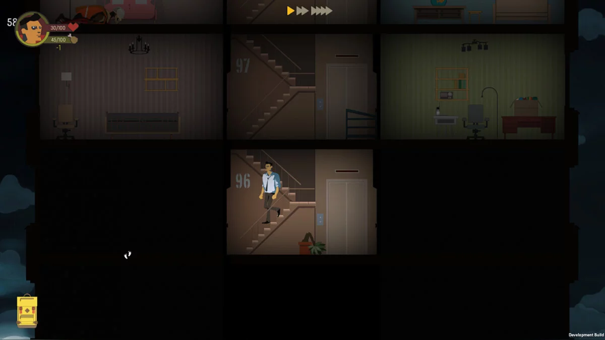 Каждая локация в игре выполнена в виде комнаты. Пока комната не будет исследована, мы не сможем узнать, что внутри. В некоторые попасть без специального ключа не получится. В этом плане Skyhill стандартный квест — найди, принеси, открой. Но суть этих заданий весьма разнообразна. Иногда нужно включать генераторы для того, чтобы воспользоваться лифтом. При его помощи мы можем быстро перейти на любой открытый этаж. Кроме того, иногда в уровнях могут встречаться дополнительные квесты. Зачастую нам предлагают взломать компьютер, решить головоломку и т.п.