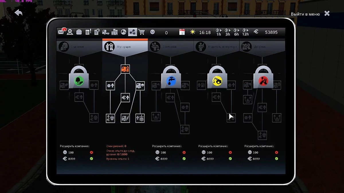 Каждая ветка имеет 4-7 способности, призванные либо получить доступ к новому транспорту и соответствующим возможностям, либо повысить заработок. Опыт растет довольно быстро, за каждый уровень вам дают очки, но какого-либо значимого изменения на игрового процесс открываемые за них навыки не оказывают. Вероятно, это связано с игровым балансом, поскольку даже под конец игры, Cityconomy: Service for Your City не дает возможности отдыхать.