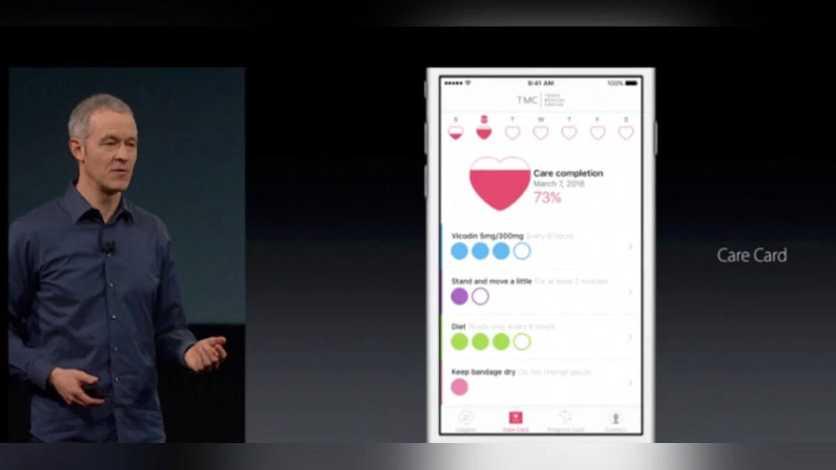 Была представлена платформа Carekit, которая ориентирована на медицинские услуги. Это система с открытым кодом, любой может писать свой код для неё. Запуск Carekit состоится в следующем месяце, в её состав войдут: