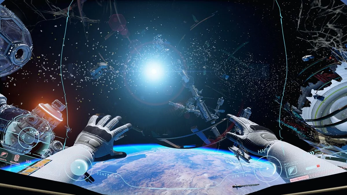 Для примера, если вы будете играть на обычном плоском мониторе, то, во-первых, поле зрения будет маленьким (даже складывается ощущение, что разработчики специально его занизили) и придется постоянно вертеть мышкой, чтобы рассмотреть каждый из рабочих углов нашего скафандра, а также обстановку вокруг. Во-вторых, некоторые элементы игры специально затачивались под управление в очках виртуальной реальности, так что перемещение в невесомости без них несколько сложнее, что отмечают многие игроки, да и мы тоже подметили.