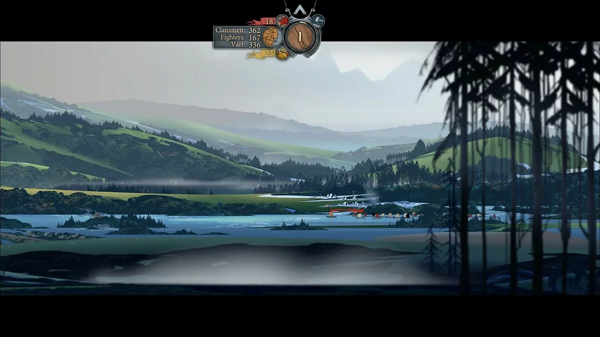 Я уже упомянул видимую бюджетность проекта. Это выражалось в следующем. Пошаговые битвы и диалоги здесь — абсолютно разнородные элементы, крайне редко влияющие друг на друга. Как бы не были зрелищны пейзажи, можно было утомиться, глядя, как неспешно караван шагает из правой части картинки в левую. В высокобюджетной игре нарисовали бы побольше изображений, у разработчиков The Banner Saga, очевидно, не было излишних средств. Обычно этого не замечаешь, когда проходишь очередную перекачанную деньгами поделку. Но в The Banner Saga радуешься каждой детали и диалогу, поэтому такие моменты бросаются в глаза.