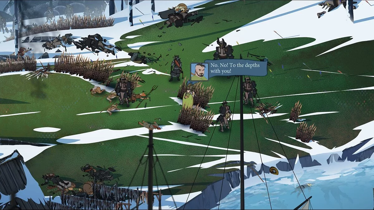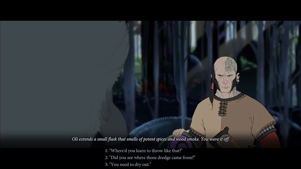 Сказанное абсолютно неприменимо к The Banner Saga! Игра доставляла те самые неожиданные последствия решений, которые BioWare сулила все эти годы. Потрясающей нелинейности событий не мешал даже ограниченный сюжет. Был здесь персонаж, который дох, как муха (Эгиль). Взяв по доброте душевной Онефа к себе в караван, вы могли наблюдать, как он убивает всё того же Эгиля и ранит нескольких важных персонажей в следующей главе. Суть в том, что последствия выбора отражались через несколько часов игры, откатиться и переиграть было невалидной опцией. Предпосылки насчёт того, чтобы не брать Онефа в караван, были, как и предпосылки, чтобы его взять — это персонаж уникального типа. В The Banner Saga вообще нет положительно/отрицательно окрашенных решений, выбор порой серее, чем в The Witcher.