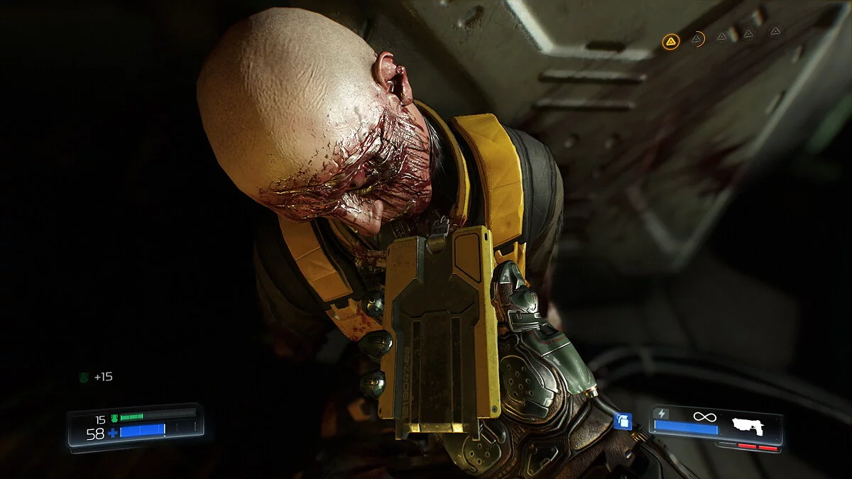 В Doom нет кусков мяса, летающих по локации от разорванных в клочья демонов, кровь не брызжет из них, не остается на стенах и не заливает пол. Вы не можете поиграть оставшимися кусками в футбол или заглянуть внутрь манкубуса, а ошметки не загадят мониторы и клавиатуры местных компьютеров. Сожженные враги не будут догорать и дымить некоторое время после смерти. Да что уж там, даже ваш шлем и руки всегда будут стерильно чистыми.