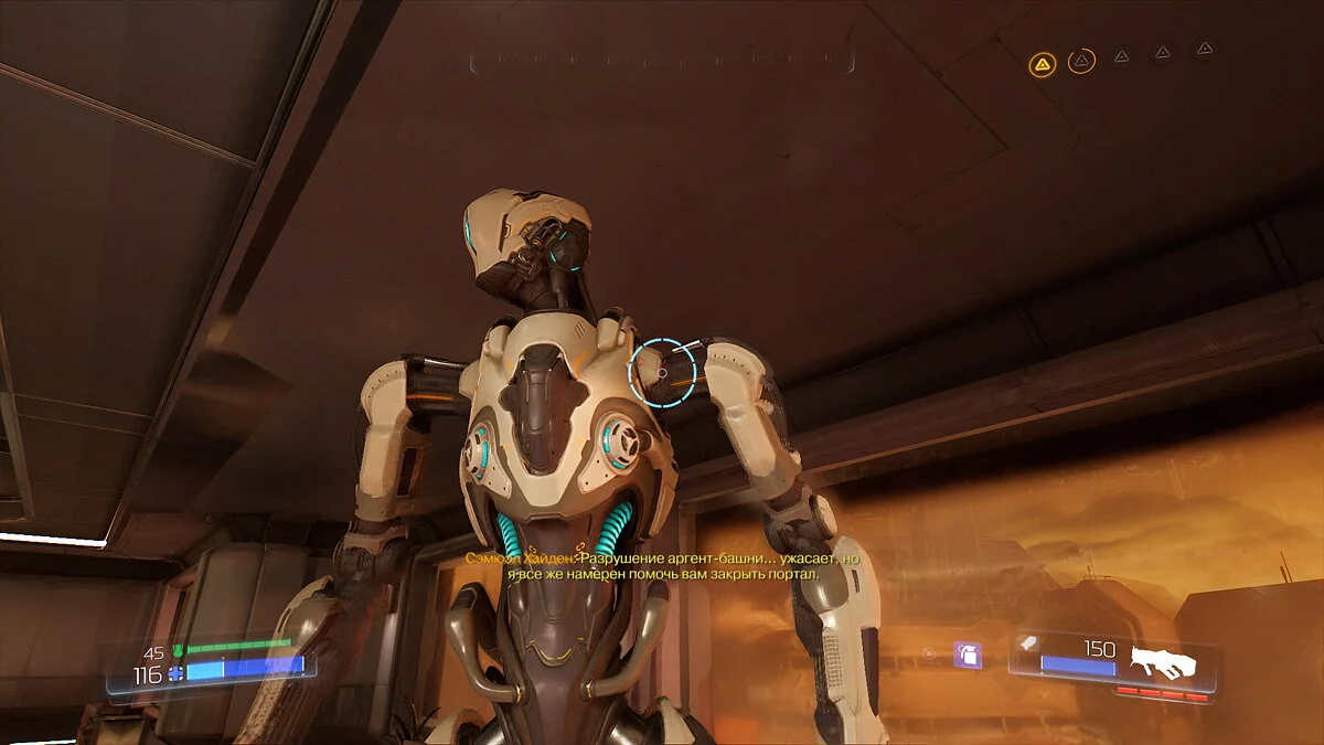 Локации интересные и запоминающиеся, набитые не только секретами и пасхалками, но и интересными моментами — придется пылесосить каждый уровень, если хотите узнать и собрать их все. Например, по уровням раскиданы аргент-ячейки для улучшения базовых характеристик преторианского костюма, вроде здоровья или количества брони, а также преторианские модули, с помощью которых можно получить бонус к ведению боя — сканер местности, устойчивость к воздействию среды и так далее.