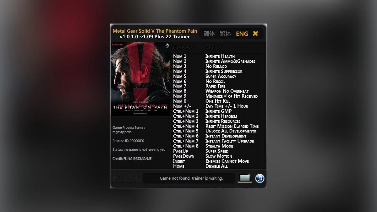 Трейнер для Metal Gear Solid 5: The Phantom Pain — неуязвимость, бесконечные патроны, супер точность, невидимость и многое другое