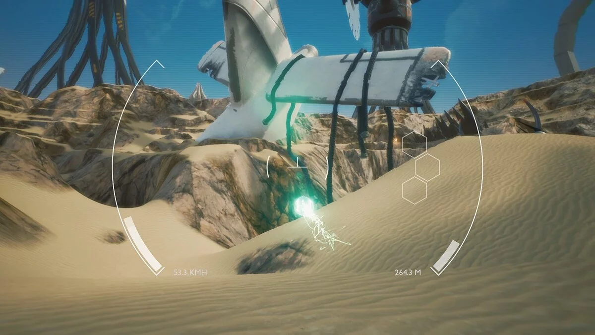 Хоть крутых технологий здесь и нет, но общая картинка выглядит очень красиво. И если вы любитель подобных квестов и вам важна история, то графика вам покажется очень красивой. Эффекты от аномалий сделаны интересно, а со временем их становится так много, что этот эффект просто не будет спадать с вашего экрана. Так же планета пестрит своим разнообразием, ведь мы наблюдаем остатки былой жизни на этой планете. Тут повсюду разные разбросаны какие-то детали огромные, краны, необычные постройки и разные корабли. Всё выглядит красиво и интригующе.