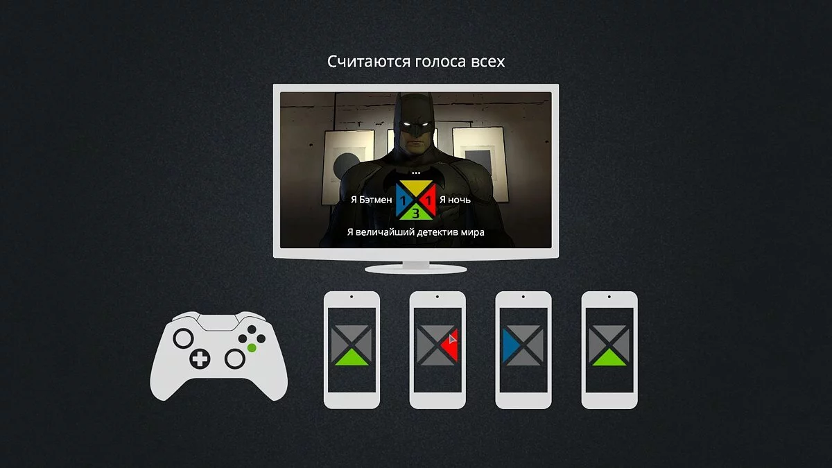 В новой игре Telltale Games дебютировала система Crowd Play («игра толпой»). Пользователь любого игрового устройства (компьютер, консоль, смартфон) после получения соответствующего кода от владельца игры может подключиться к прохождению и голосовать за те или иные выборы. Наиболее популярный ответ и станет репликой Бэтмена.