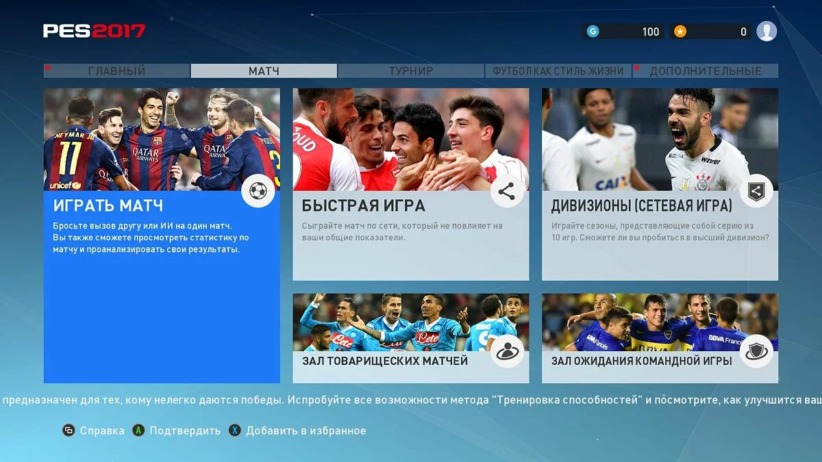 С точки зрения режимов PES 2017 не сильно удивит игроков прошлых частей, но кое-что новое все-таки есть. Например, тренировочный режим еще более доступно и удобно объяснит вам принципы игры. Перфекционисты же, наверняка, захотят принять вызов заработать золотую медаль в каждой из тренировок.