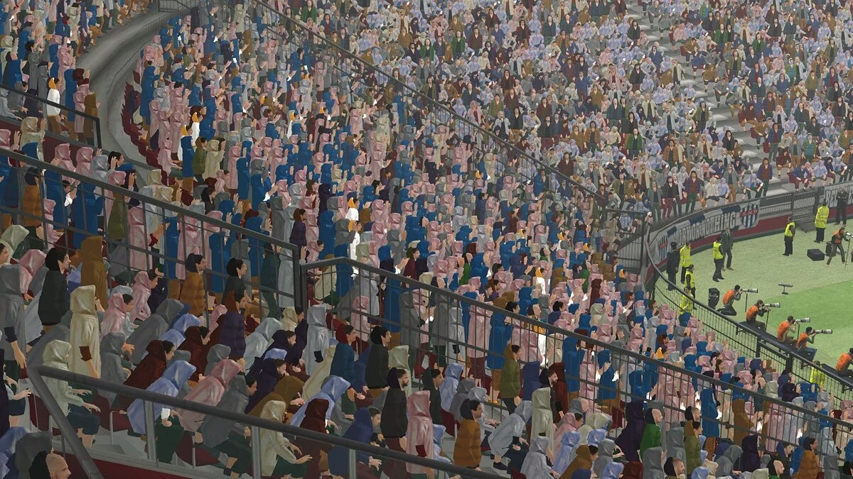 Если на игроков и судей еще возможно смотреть, то вид болельщиков и грубо обрезанных моделей репортеров и стюардов приводит в уныние.