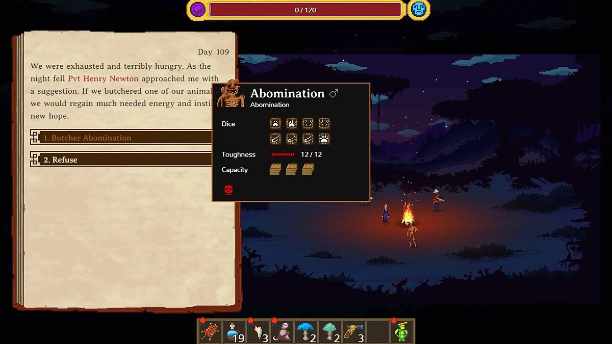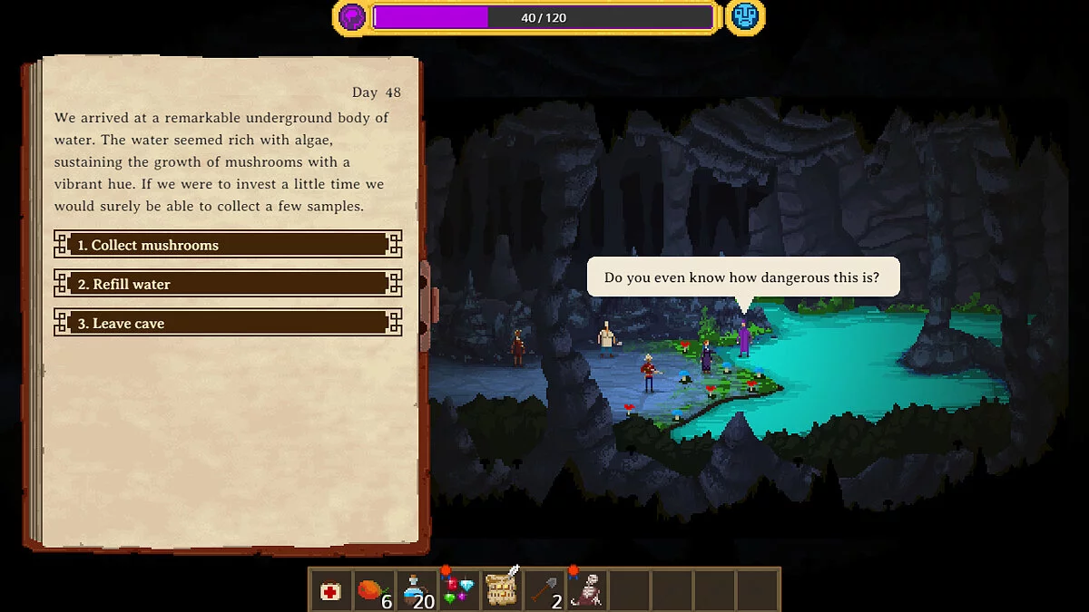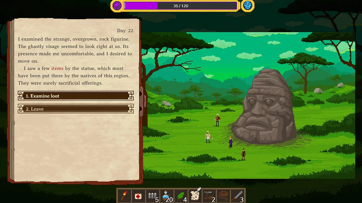 Во время экспедиций может произойти что угодно. Например, если ваш показатель «Ясности мышления» (фиолетовая полоска в верхней части экрана) слишком сильно уменьшится, то ваши попутчики могут заработать дендрофобию, или, что ещё хуже, совсем сойдут с ума и попытаются вас убить. Заразиться неизвестной болезнью? Как дважды два. После подобного ваш попутчик может начать медленно превращаться во что-то такое, что приснится только в кошмарах. И, в конце концов, вам придётся решать, оставить беднягу в живых или нет, потому что никто не знает, что с ним может стать дальше.