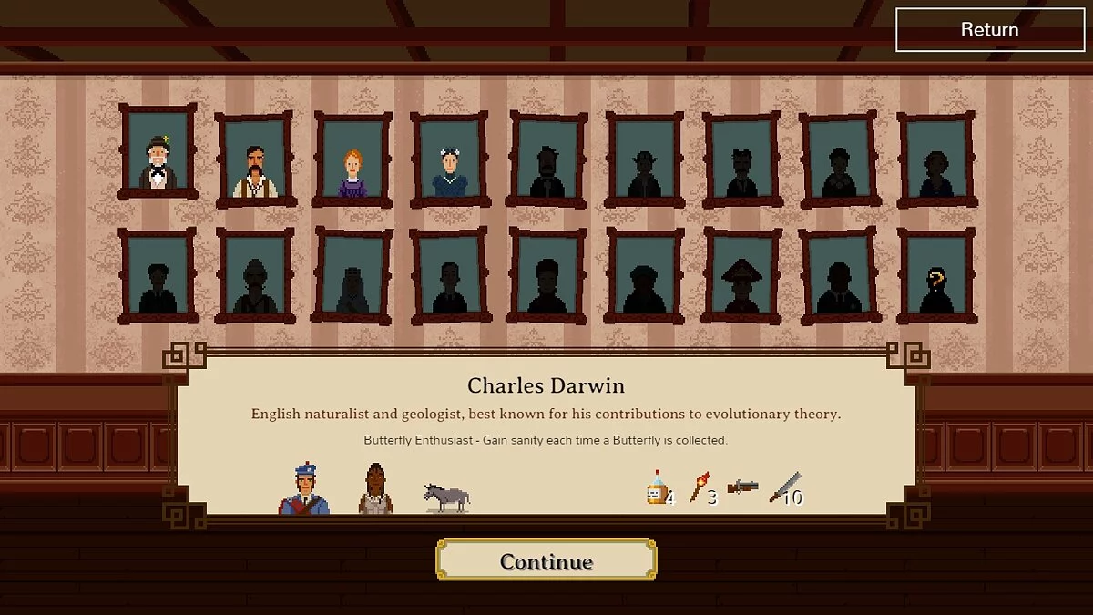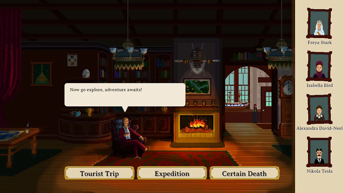 Основная идея игры — дать игроку почувствовать себя настоящим исследователем и первооткрывателем. Выбираем одного из известных исторических персонажей, каждый из которых обладает своими особенностями, и отправляемся в нелёгкий путь. Общее количество персонажей на данный момент составляет аж 17 — правда, с оговоркой, что в самом начале вам доступна лишь небольшая часть этого многообразия. Хотите большего — выполняйте задания, которые подробно расписаны под каждым затенённым портретом, чтобы открыть данного исследователя.