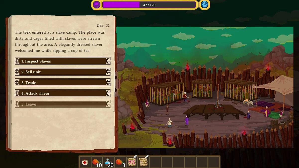Интересные для исследователя и первооткрывателя места выделяются на карте, притом, как своим видом, так и специальными указательными метками, так что уж вы их точно не пропустите. Места самые разные — от древних храмов, святилищ и пещер, до болотных домиков местных шаманов, останков гигантских слонов и даже лагеря рабовладельцев. Хотите приобрести себе в компанию раба, а, возможно, и продать кого-нибудь из надоедливых попутчиков? «А почему бы и нет», — отвечает игра.