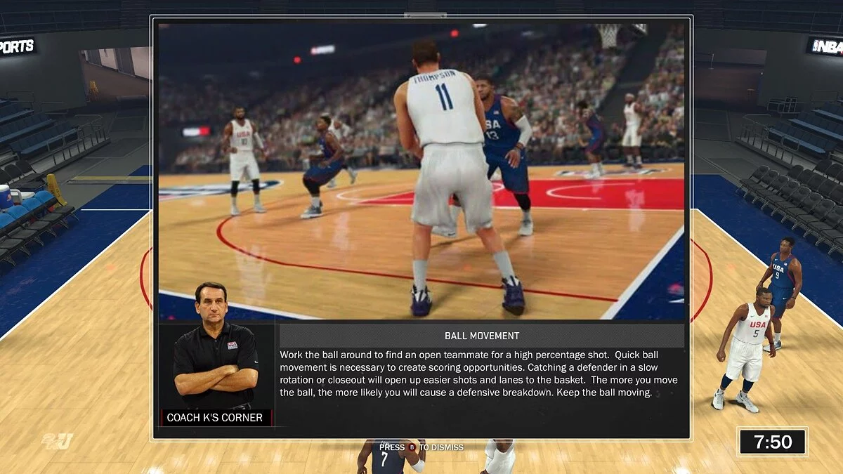 Заняться тактической и не только подготовкой игрока призван тренировочный режим 2KU, который является универсальным сборником практичных советов по игре. В подходящий момент тренировочный спарринг приостанавливается и тренер дает четкие инструкции, как выполнять то или иное действие. Данный режим подстраивается под игрока, поэтому если вы повторно зайдете в него, вам не придется снова постигать основы.