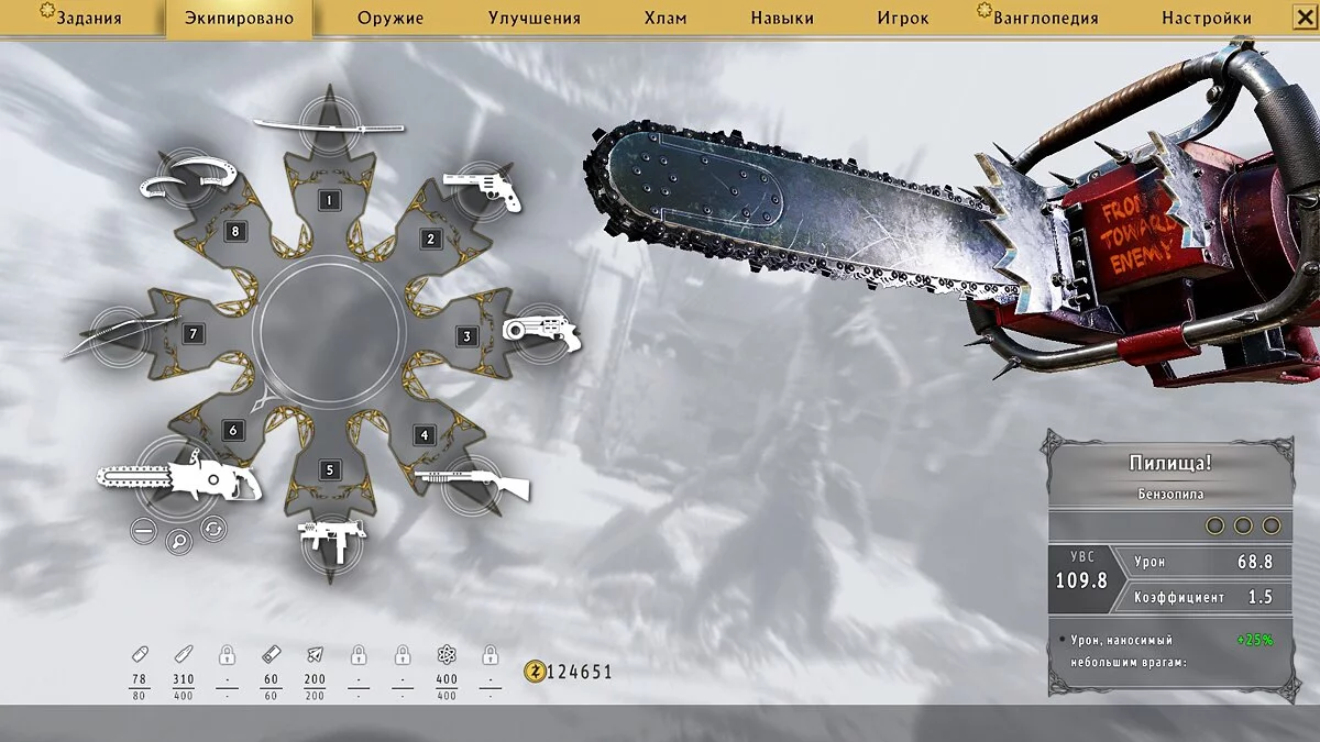 Уже на самых ранних порах появляется множество «развилок» в развитии персонажа. Никто не мешает полностью отказаться от стрельбы и орудовать исключительно оружием ближнего боя — мечами, кинжалами, бензопилой и так далее.