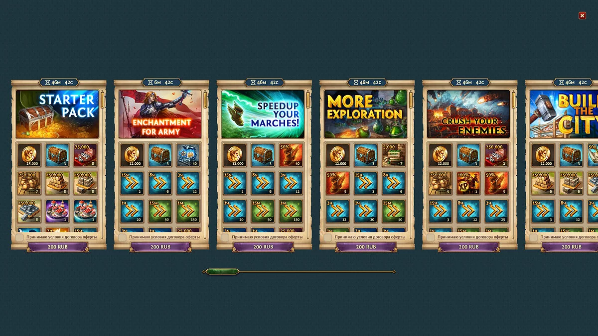 За реальные деньги в «Триумфе» можно все: мгновенно строить здания, ускорять передвижение войск по глобальной карте, получать какие угодно ресурсы из бездонного хранилища, быстро исследовать технологии… Список можно продолжать, и чем дальше — тем хуже.