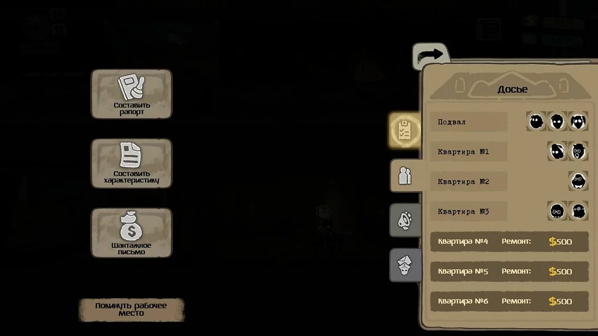 Так уж вышло, что мы, а именно наш персонаж, оказывается не в самом худшем положении. Задача героя — следить за жителями дома, и если кто-то из граждан делает или даже просто замышляет совершить что-то противозаконное, он должен сразу сообщить об этом в соответствующий орган, выслав рапорт. Однако все не так уж и плохо в этом мире, как может показаться на первый взгляд. Многие люди, несмотря на отсутствие свободы, очень добрые, и могут прийти на помощь в самый нужный момент. С каждым персонажем у нас может завязаться диалог с несколькими вариантами ответов и вопросов. Диалоги в Beholder прописаны достаточно интересно, а поэтому скука во время общения с NPC обходит нас стороной по мере прохождения.