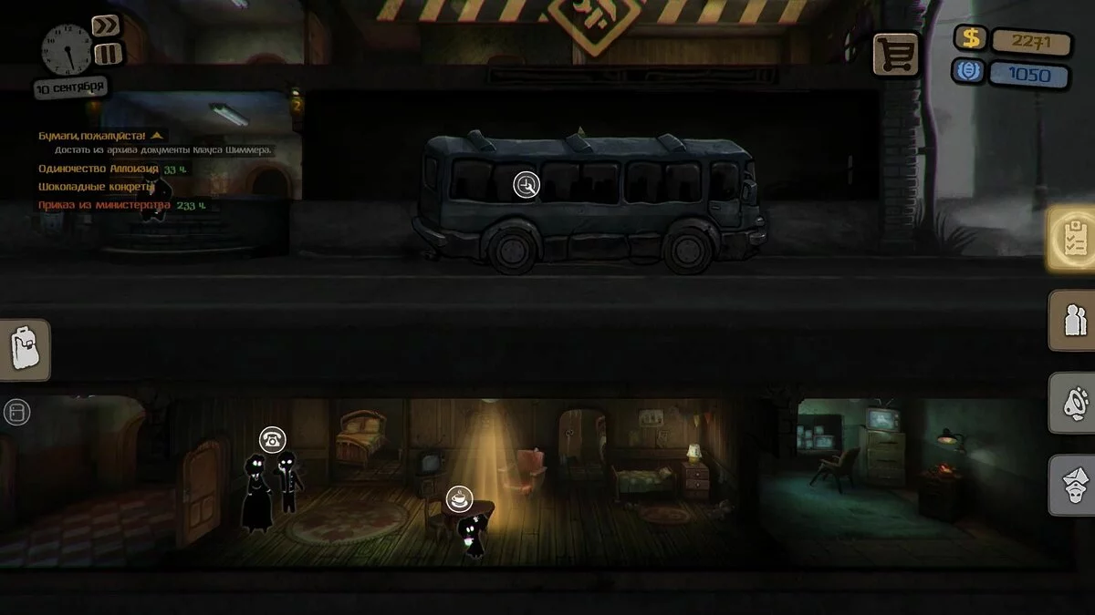 Как только мы приезжаем на новую квартиру, то видим, как группа подвластных людей насильно увозят предыдущего управляющего домом, который «неудовлетворительно» справлялся с обязанностями. Нам, как бы сразу намекают, что вселенная, в которой происходит основное действие, является чем-то вроде более извращенных «сталинских времен» или сюжета романа «1984» Джорджа Оруэлла (George Orwell). В мире игры обычные граждане не имеют права на тайны — правительство должно знать все о каждом человеке — чем он занимается в свободное время, с кем живет, во сколько возвращается домой и все в таком духе. По сути, игровая вселенная — это антиутопия, в которой жить захотелось бы разве что людям, которым плевать на себя и своих близких.