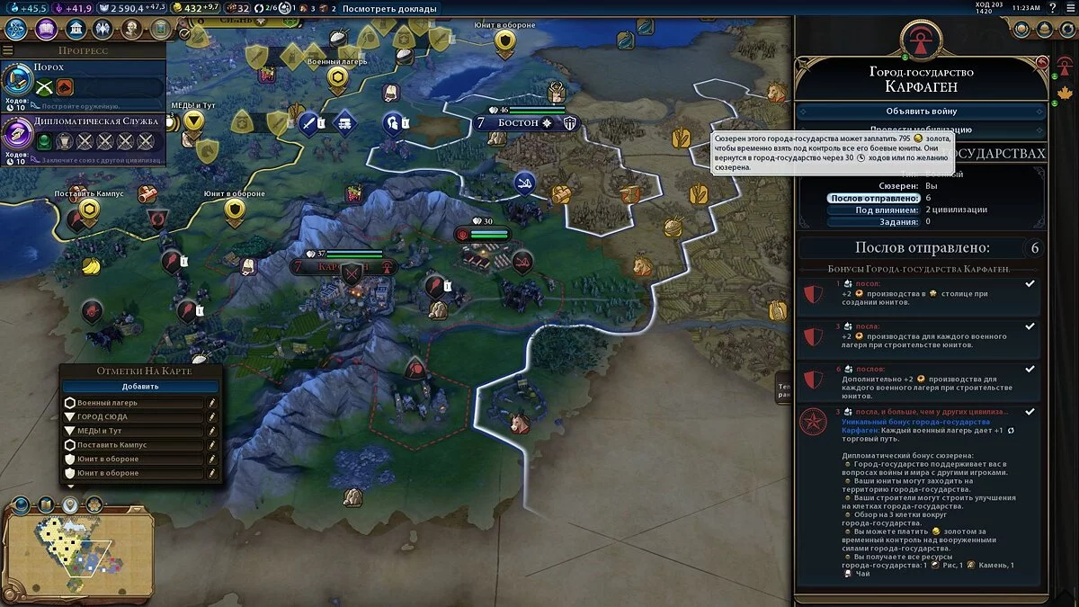 Как стать сюзереном (союзником) города-государства в Civilization 6?