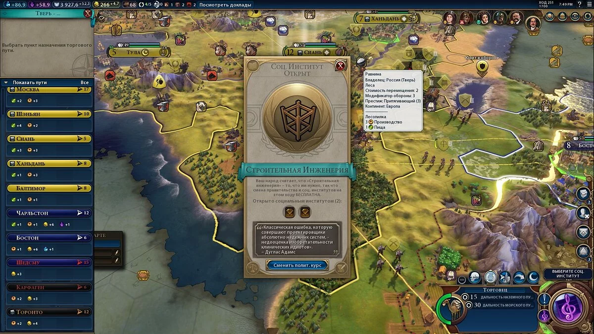 Что касается карточек политик, то, открывая их с каждой новой технологией или гражданской наукой, вам нужно просто внимательно читать их описание и соотносить к тому, что есть на карте и как обстоят дела: