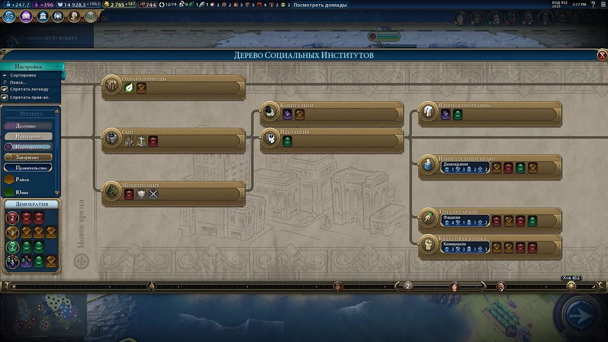 Либо после открытия той или иной гражданской науки, когда перед вами появится соответствующее уведомление и строки «гражданам не терпится опробовать новую форму правления»: