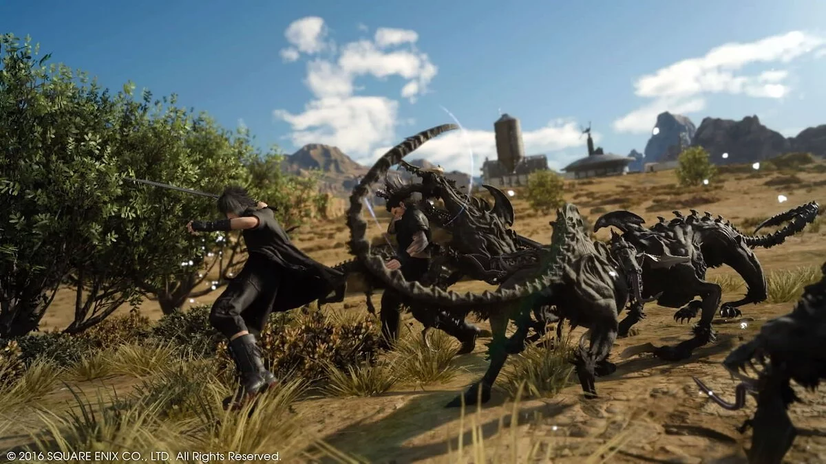 И если в ее играх боевая система более-менее стандартна, то для Final Fantasy XV придумали нечто совершенно новое — прощаемся с пошаговыми сражениями, встречаем смесь из Active Time Battle и элегантного, простого слешера. Грубо говоря, есть три основные кнопки — атака, уклонение и телепорт. Удерживаем «круг» — Ноктис атакует. Удерживаем уклонения — Ноктис уклоняется. Удерживаем «правый бампер» — Ноктис телепортируется. В зависимости от врагов и их количества приходится выбирать вооружение, тактику, экипировку, не забывая при этом изредка отступать для восстановления очков здоровья и «маны». Если описать все действия одним словом, то это будет «слежение».