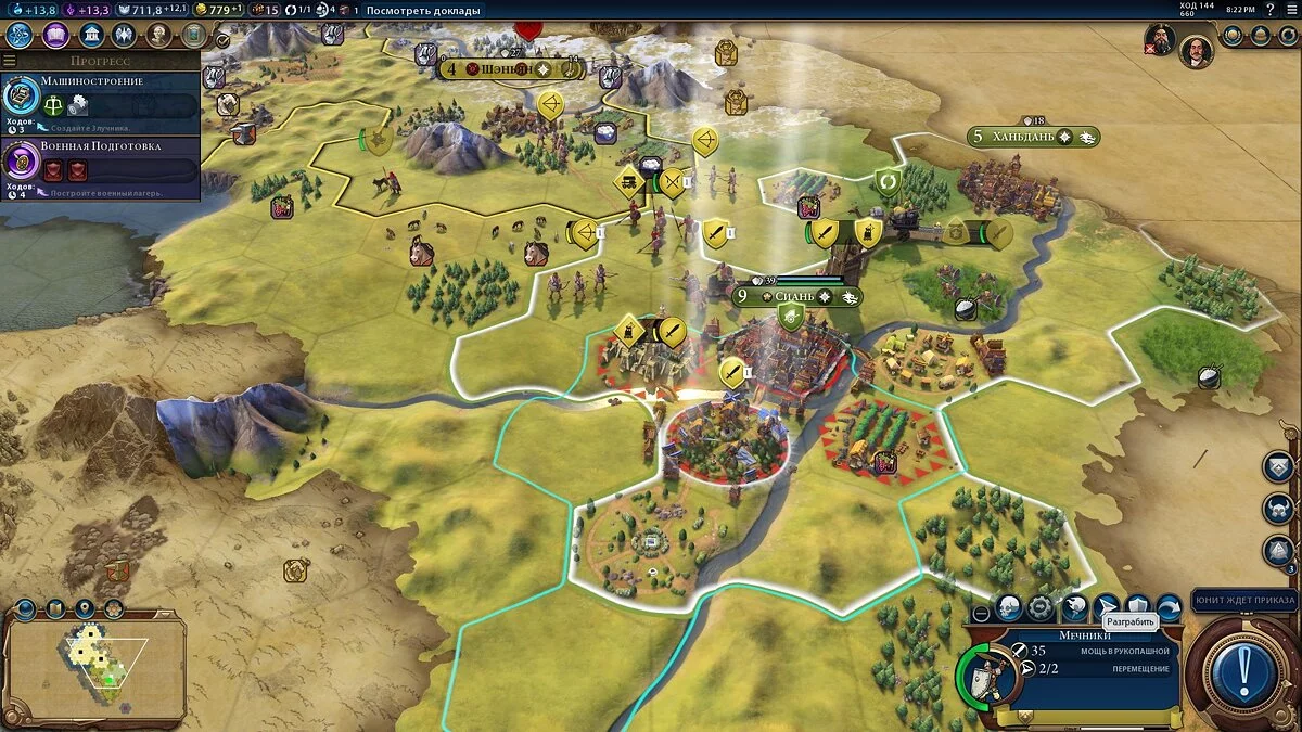 В мирное время ИИ держит свои юниты в 1-2 клетках от границы, так что если вы видите их около ваших границ, это означает развертывание вражеских армий и подготовку к нападению. Сразу начинайте строить юниты, покупайте их за золото и очки веры, поскольку война неизбежна.