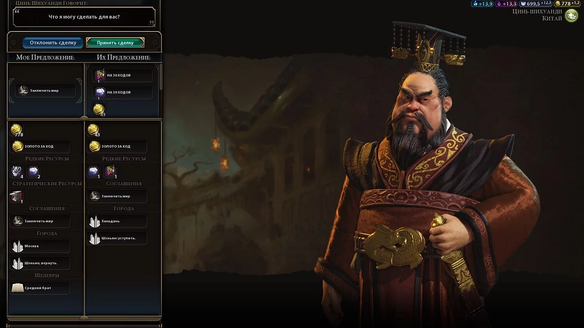 - Смысл этого действия в том, чтобы дождаться момента, когда ИИ сам предложит заключить мир и еще заплатит за это, а если вы вернете ему хотя бы один захваченный город, то он вообще начнет дружить. При этом вы не получите больших штрафов за милитаризм.