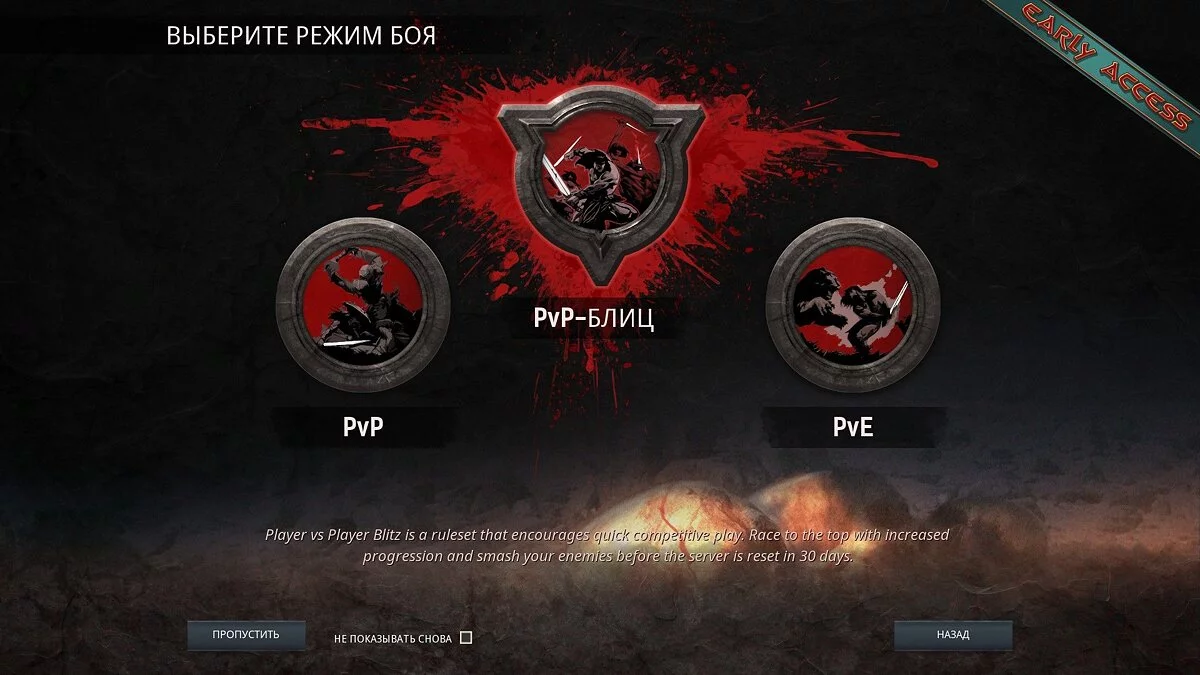 Разработчики придумали довольно интересную систему специализации серверов, чтобы угодить как можно большему числу игроков. При попытке поиграть онлайн, Conac Exiles любезно спрашивает, какой именно геймплей ищет игрок. Сначала нужно выбрать один из трех основных форматов: PvP (разрешены бои между игроками), PvE (бои только с NPC) и так называемый PvP-блиц.