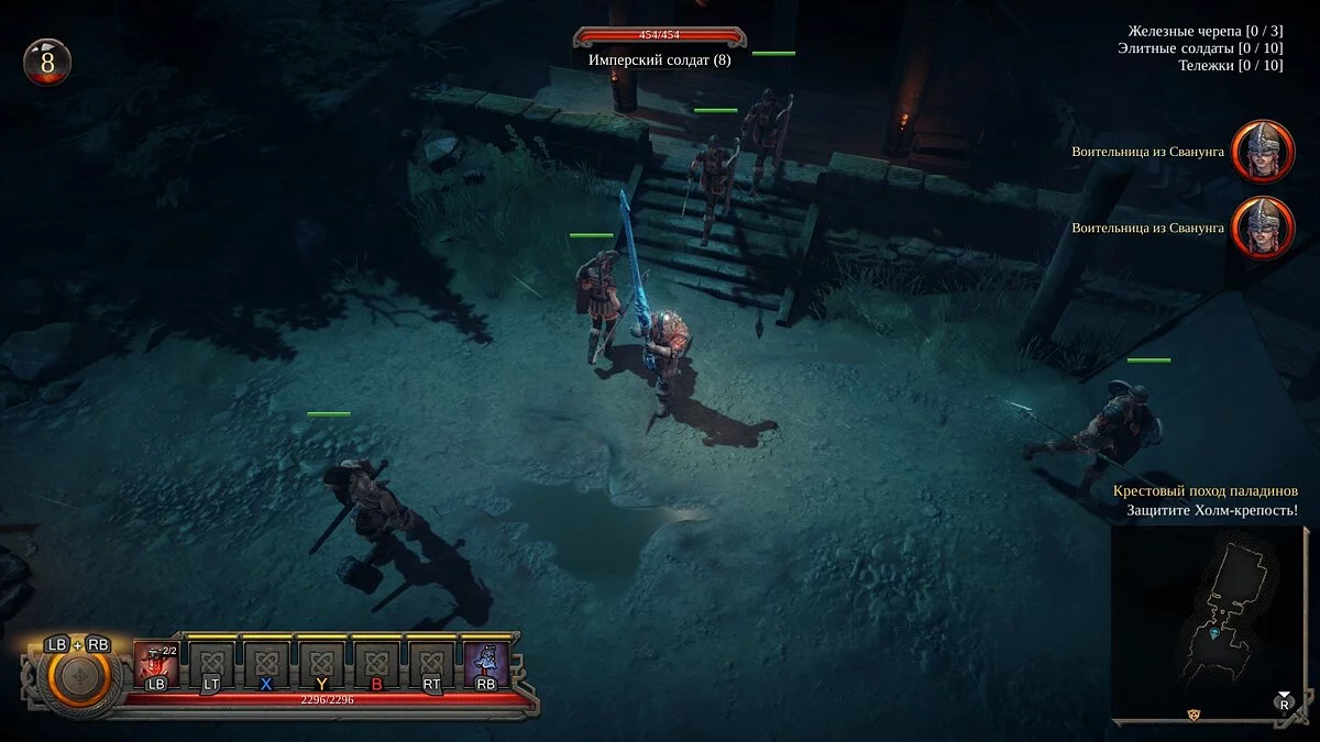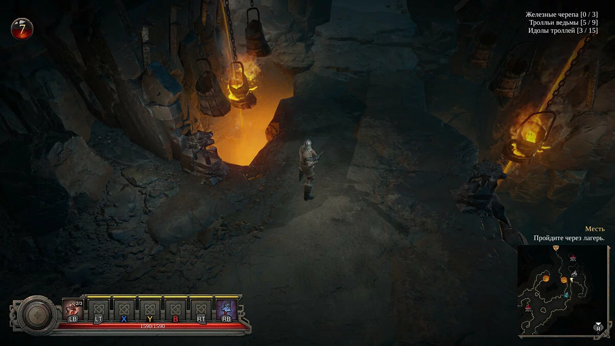 Сюжетная линия, кстати, в игре находится на довольно средненьком уровне. История вертится вокруг спасения мира, которое лежит на плечах клана Ульфунг. Играть вы будете за ярла этого клана, у которого есть ряд подчиненных, а также собственные покои с троном и трофеями, добытыми в ходе стычек с боссами. Внутриигровая история подается в виде текстового формата. Чтобы узнать о сюжете, нужно детально вчитываться в диалоги с персонажами и слушать рассказчицу. К сожалению, зрелищных роликов на уровне Diablo 3 в игре нет, что и неудивительно, учитывая разные бюджеты данных продуктов.